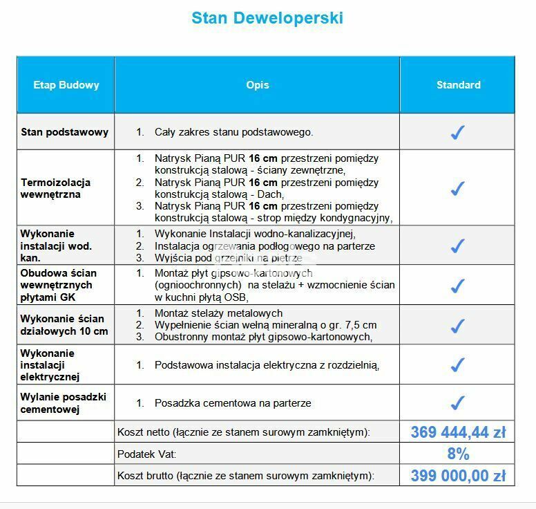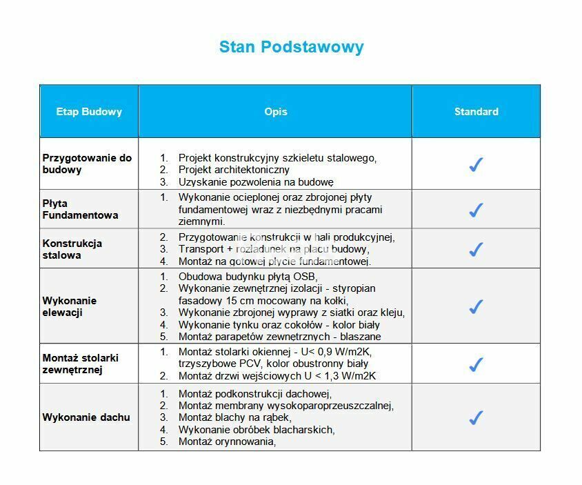 produkcję i montaż, aż po stan gotowy do wykończenia, powodując
