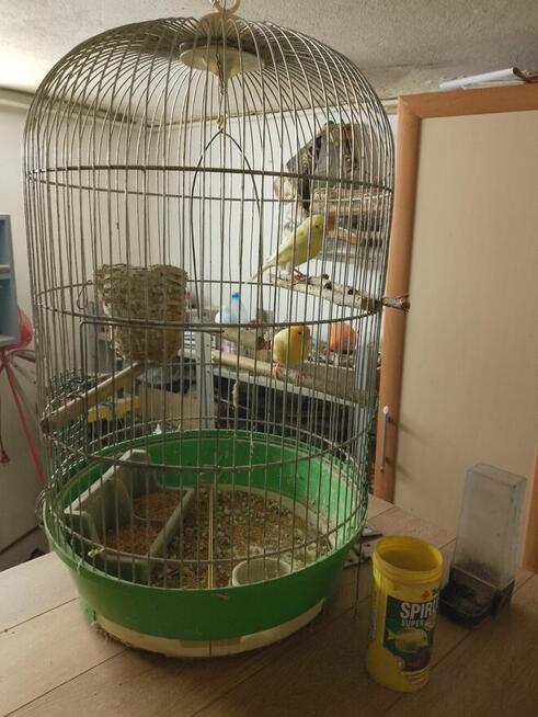 sprzedam parkę kanarków ze złotą klatką (okrągła) ptaki same się dobrały 300 zł